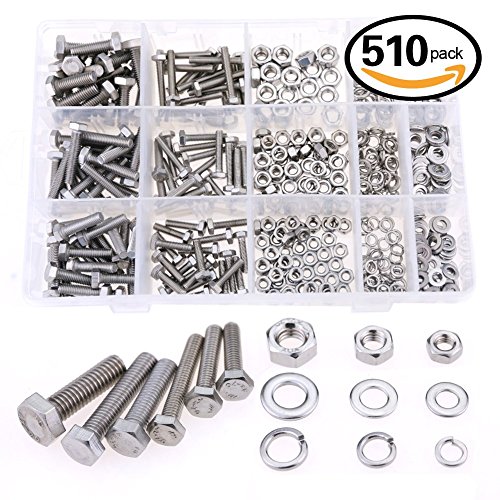 - Product Name: Glarks 510 Pieces Flat Hex Stainless Steel Screws Bolts nuts Lock and Flat Gasket Washers Assortment Kit